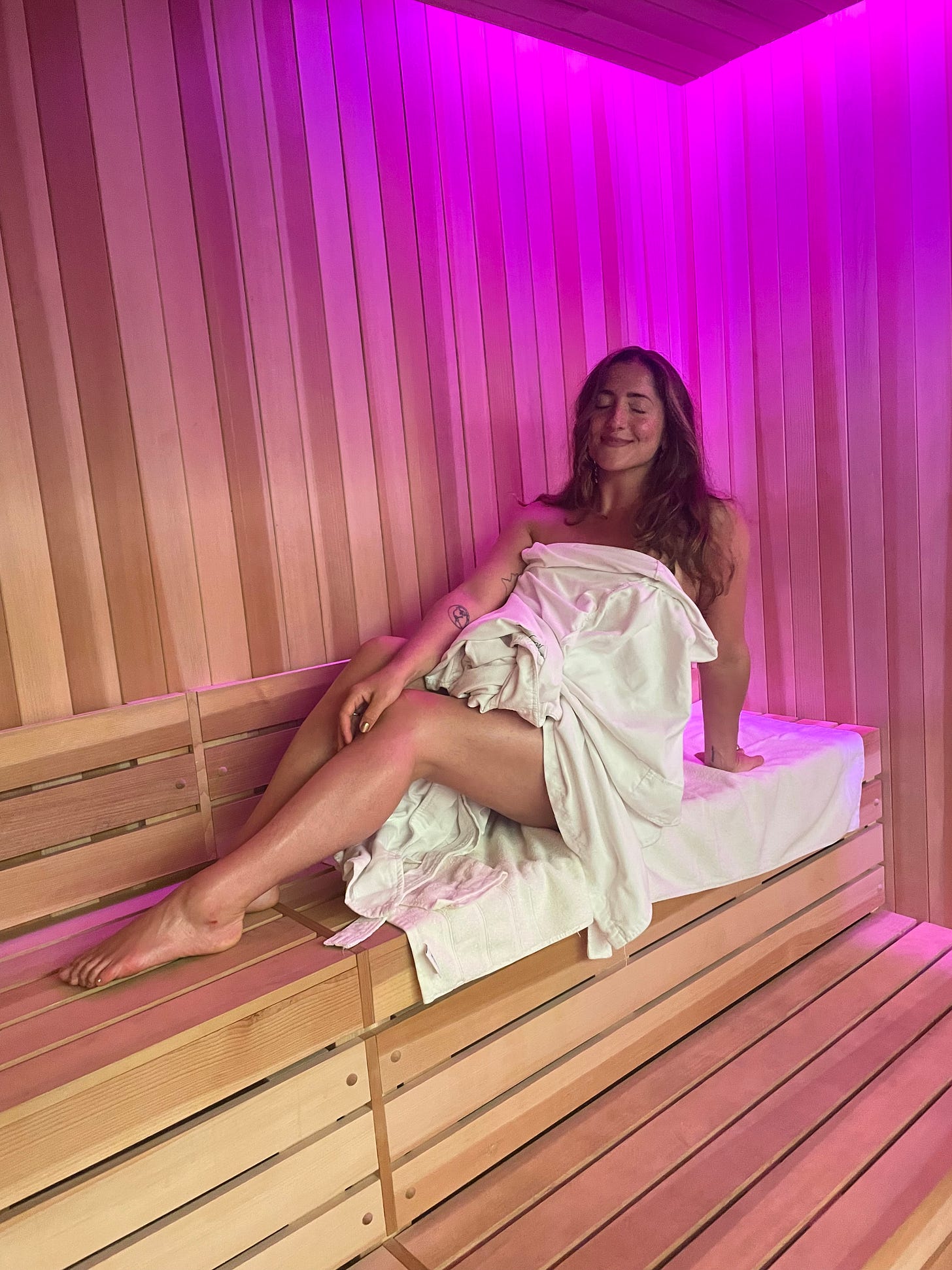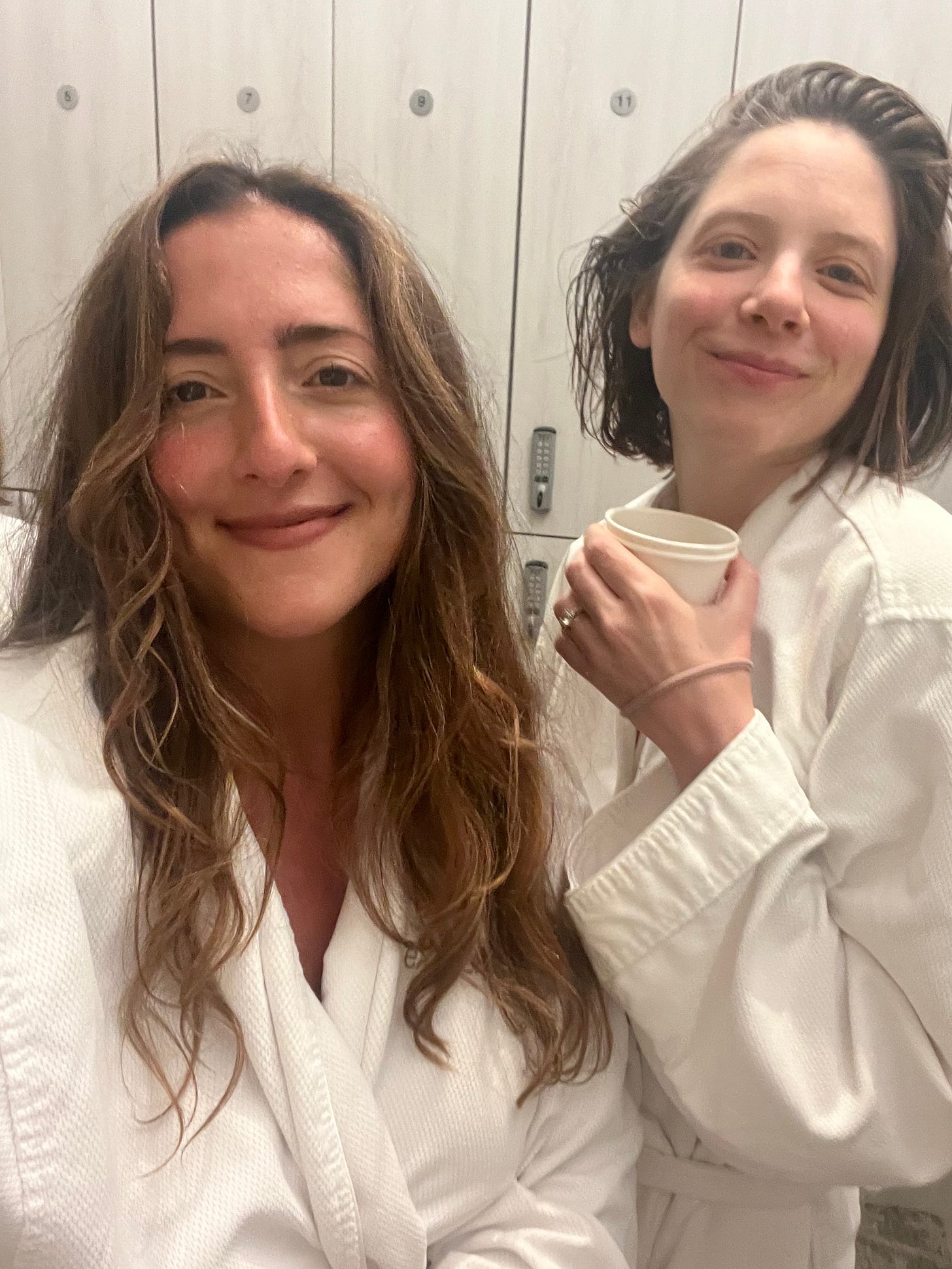 The massage was amazing. Exhale Spa uses heated beds, weighted blankets, and tables that can adjust positions a la the famous tempur-pedic mattresses of the early 2000s. I spent the entire 90 minutes slack jawed and melting into my therapist’s hands. After the massage, Hallie and I did a quick sauna moment before meeting Becca back at her place, where a full spread was laid out on her dining table. We did face masks and snacked on cheese and fruit and dolmas and spanakopita. Later, we headed downtown for cocktails and dinner at Palma, a beautiful Italian spot in the west village with a backyard patio covered in twinkle lights. I was not not flirting with the host, a Clark Kentish lookalike who was absolutely many years younger than me.