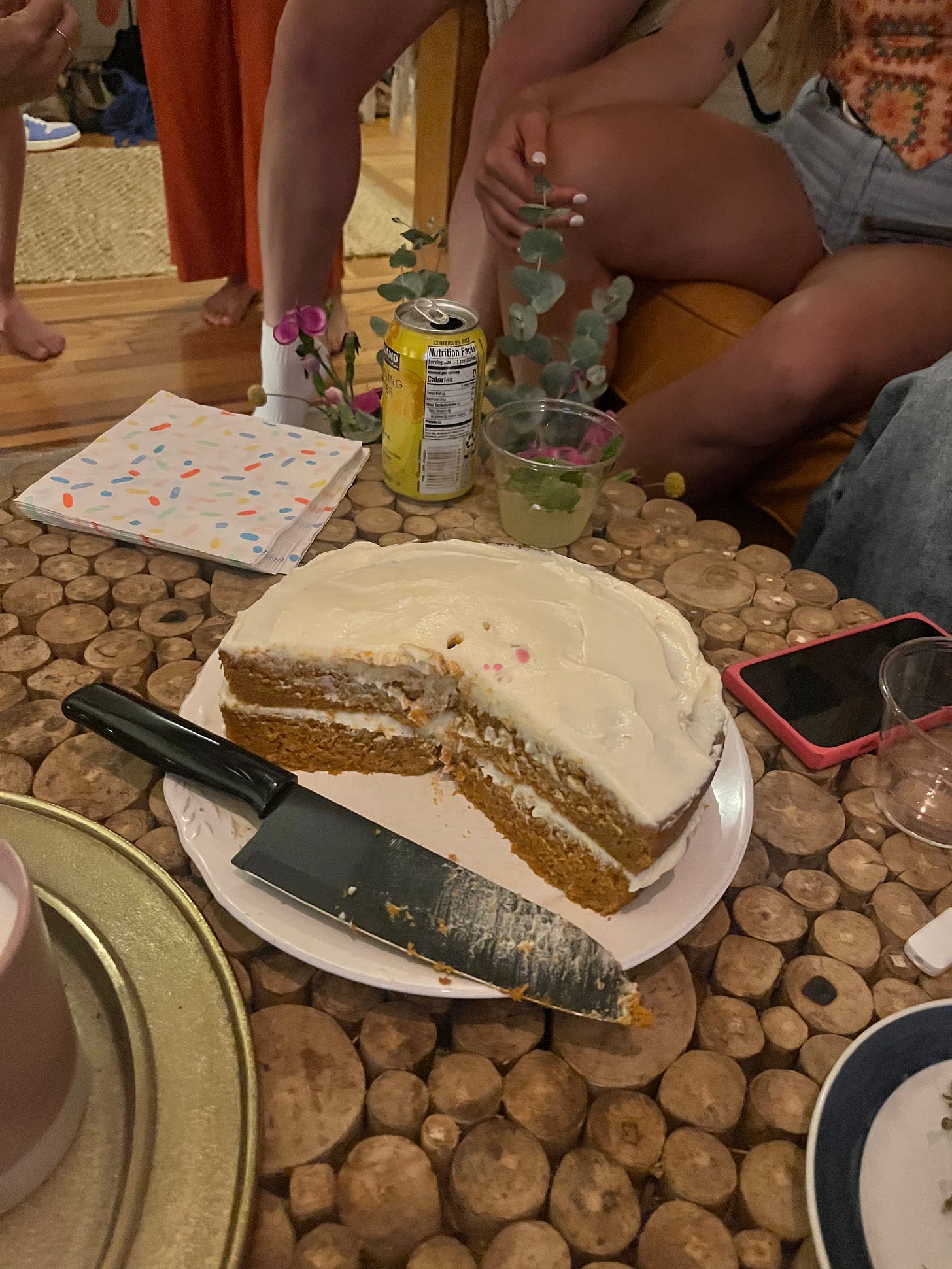 By the time by buzzer rang, I was sweating from pacing around my apartment all day in preparation, but mostly just really excited to see a bunch of my friends in one place. It was a beautiful evening of homemade carrot cake with cream cheese frosting and people clustered in corners gabbing, me bopping manically around making sure I got to chat with everyone, smitten at a full house of my beloveds. People really turned up with the party food- homemade focaccia, an heirloom tomato tart, korean fried chicken, and of course my classic lipton onion dip, always a crowd pleaser. After blowing out my birthday candles, I made everyone go around in a circle and say a word or intention for the coming year.