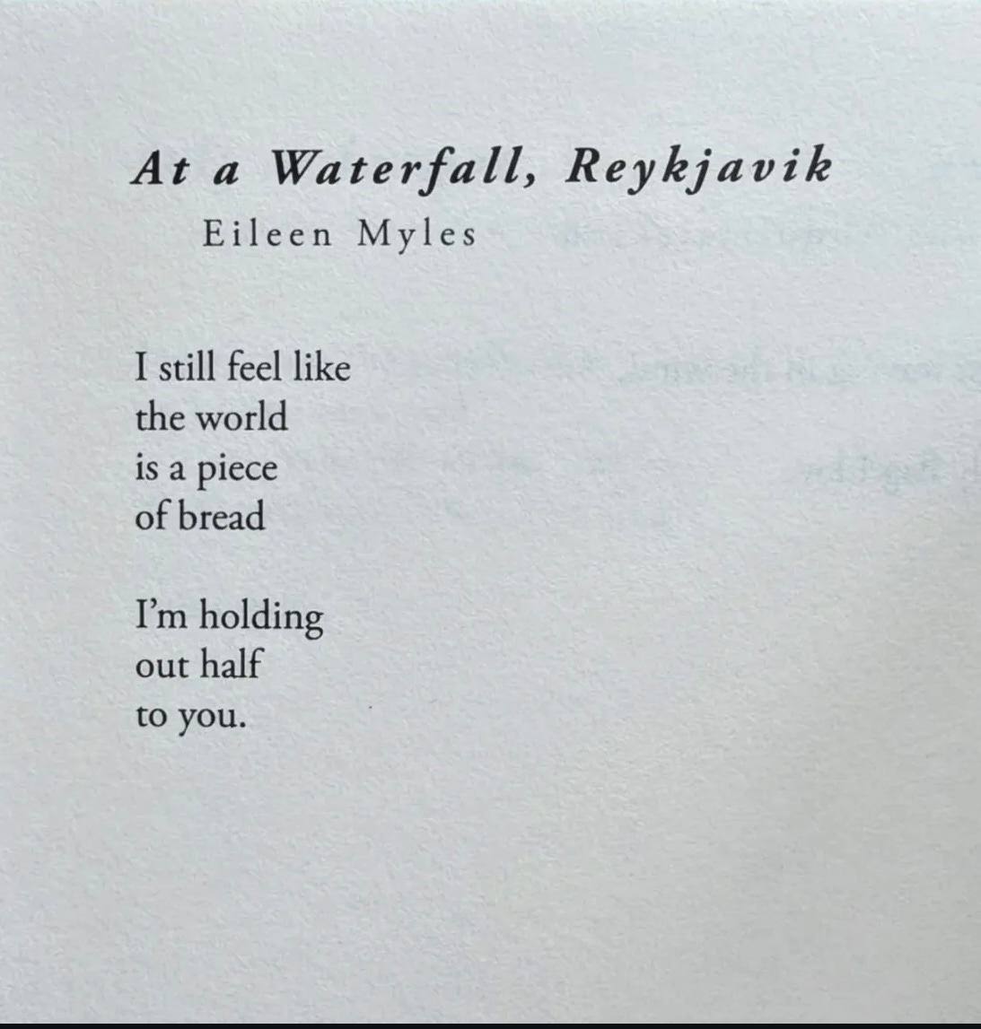 Life feels a little like this poem lately. I’m grateful to the people in my orbit graciously accepting the other half of bread. How are you holding up?