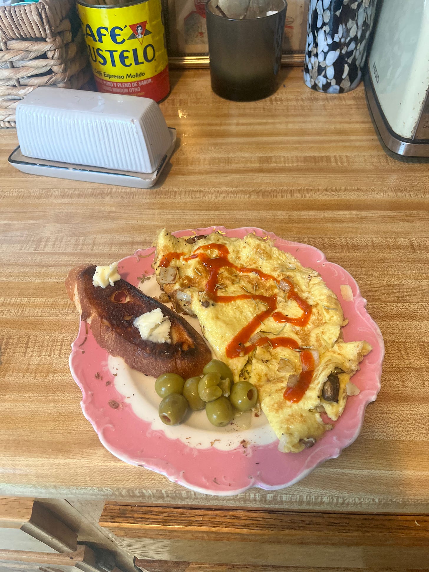 My friend Katie brought us back wooden spatulas from Colombia and I used it to cook my omelette this week. It’s the little things!